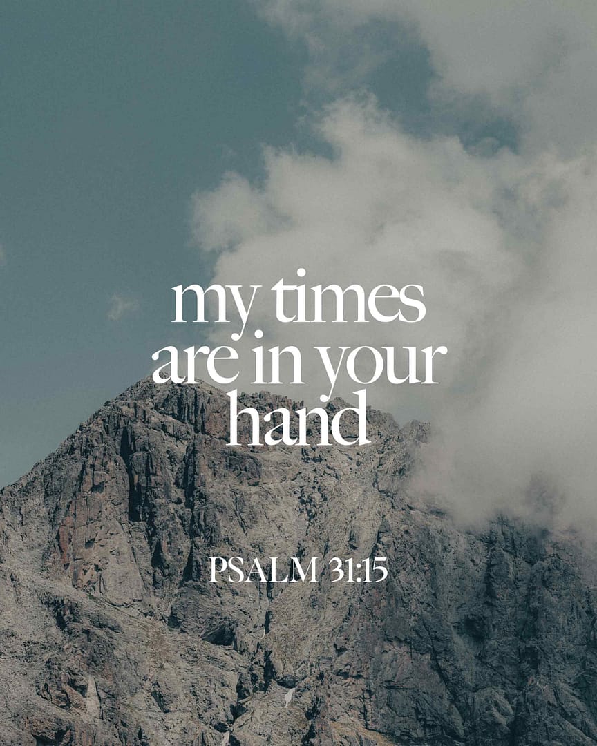 December 10, 2023 Psalm 31:15My times are in your hand; rescue me from the hand of my enemies and from my persecutors!-Psalm 31:15 ESV
