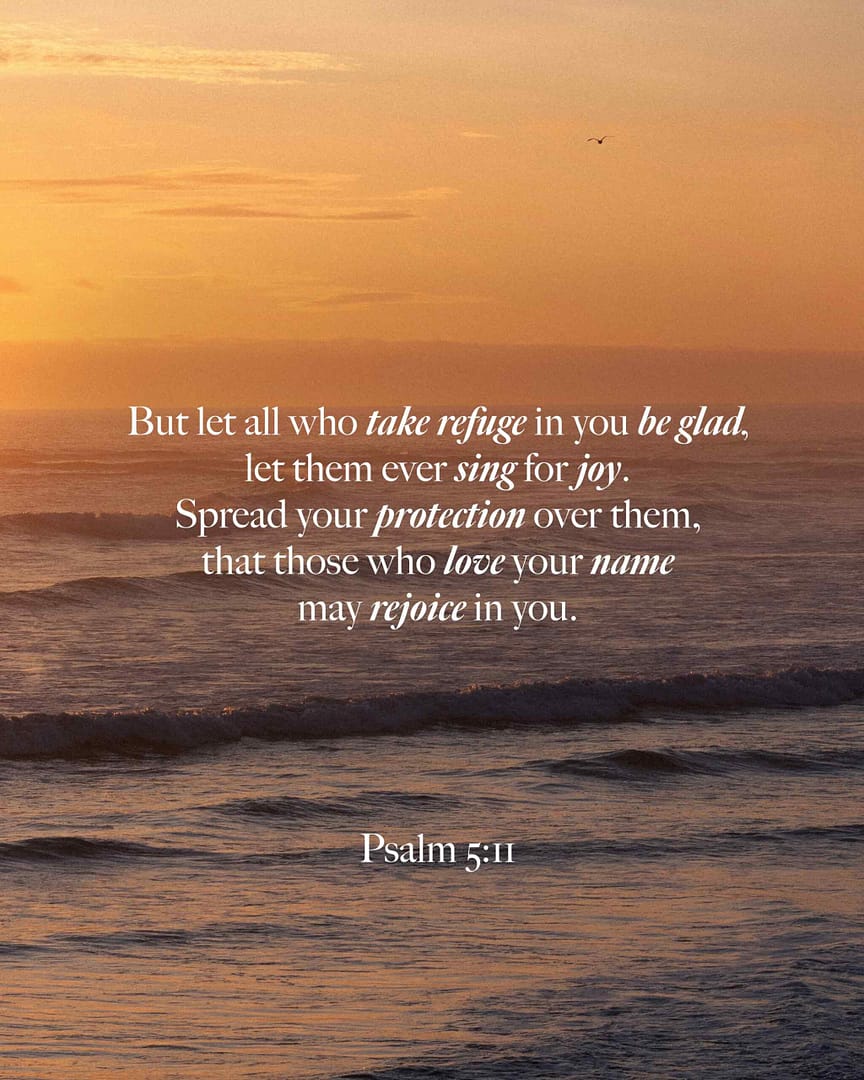 December 10, 2023 Psalm 5:11But let all who take refuge in you be glad; let them ever sing for joy. Spread your...