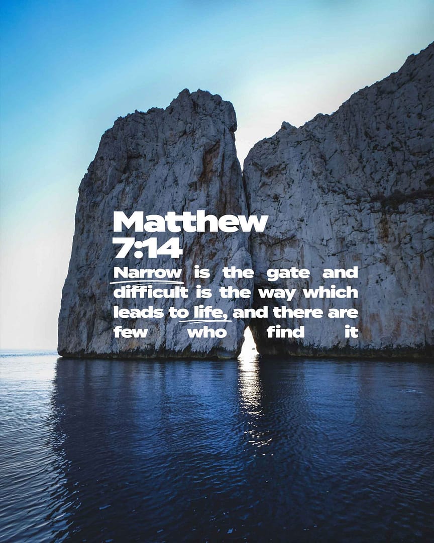 December 6, 2023 Matthew 7:14Because narrow is the gate and difficult is the way which leads to life, and there are few who find it.-Matthew 7:14...