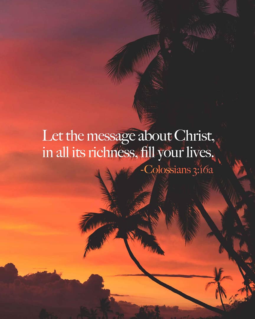 December 10, 2023 Colossians 3:16Let the message about Christ, in all its richness, fill your lives. Teach and counsel each other with...