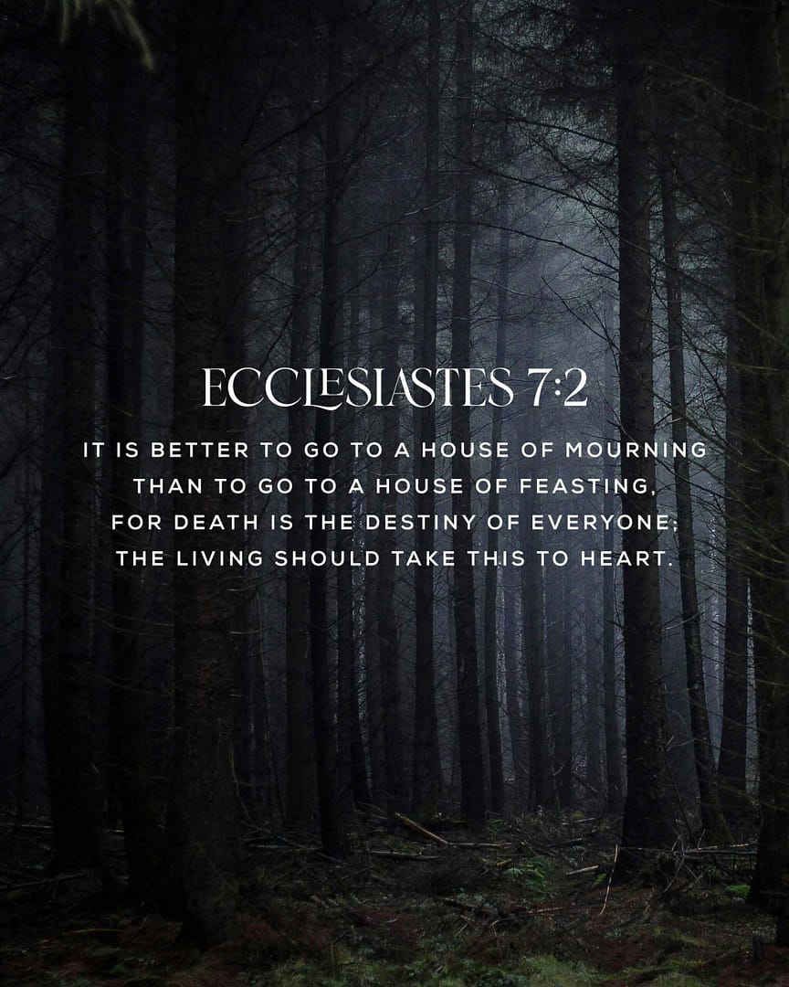 December 5, 2023 Ecclesiastes 7:2It is better to go to a house of mourning than to go to a house of feasting,...