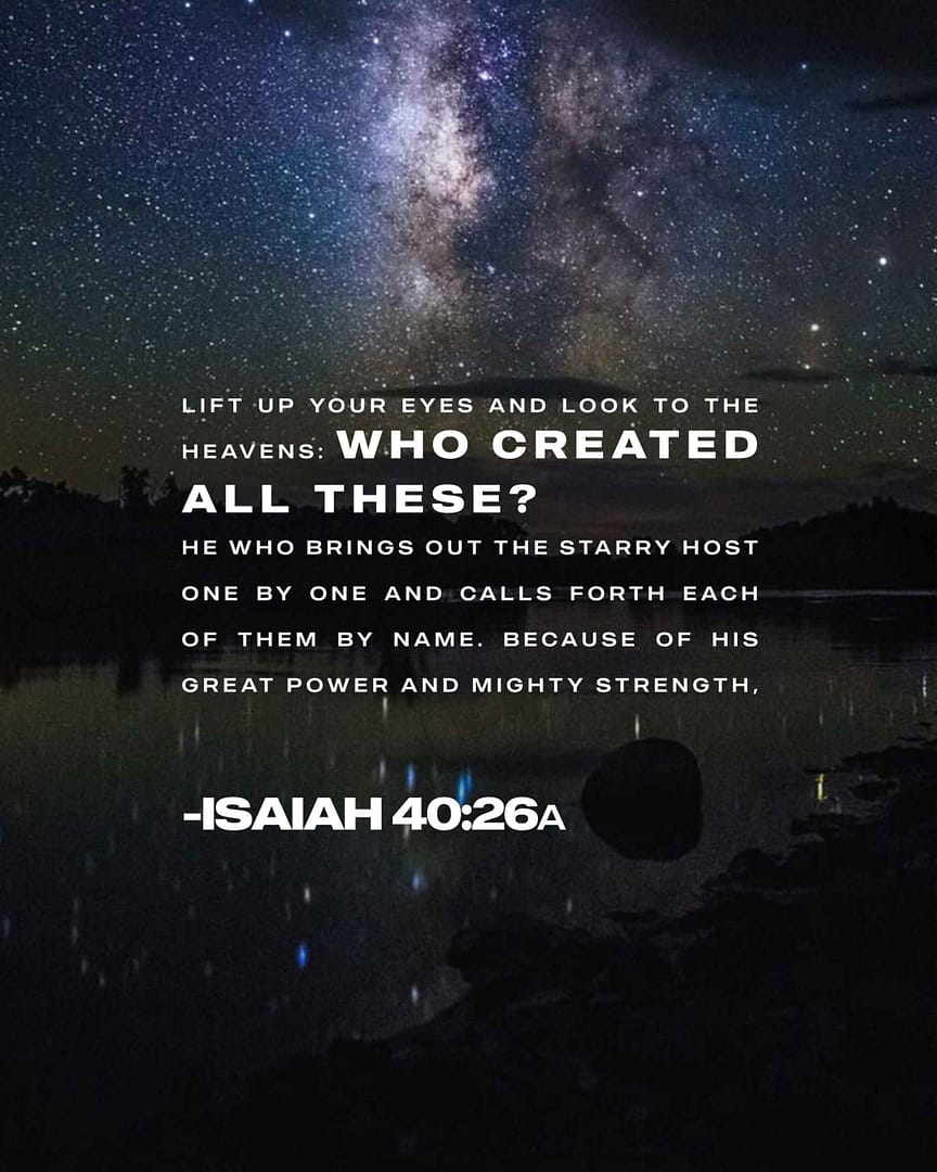 December 6, 2023 Isaiah 40:26Lift up your eyes and look to the heavens: Who created all these? He who brings out the...