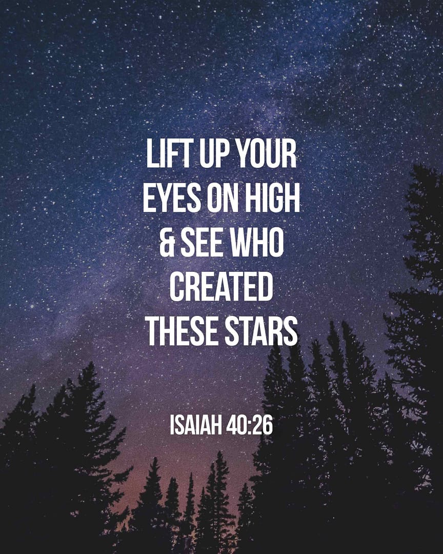 December 10, 2023 Isaiah 40:26Lift up your eyes on high and see: who created these? He who brings out their host by...