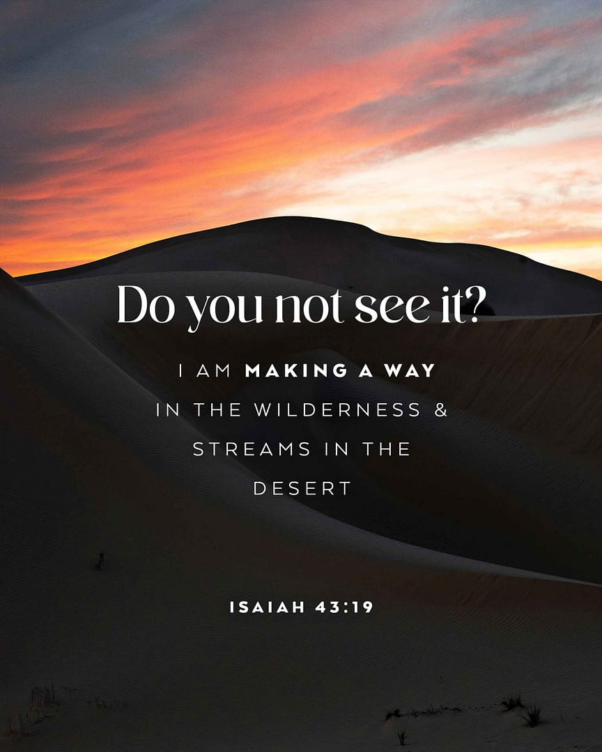 December 10, 2023 Isaiah 43:19Behold, I am doing a new thing; now it springs forth, do you not perceive it? I will...