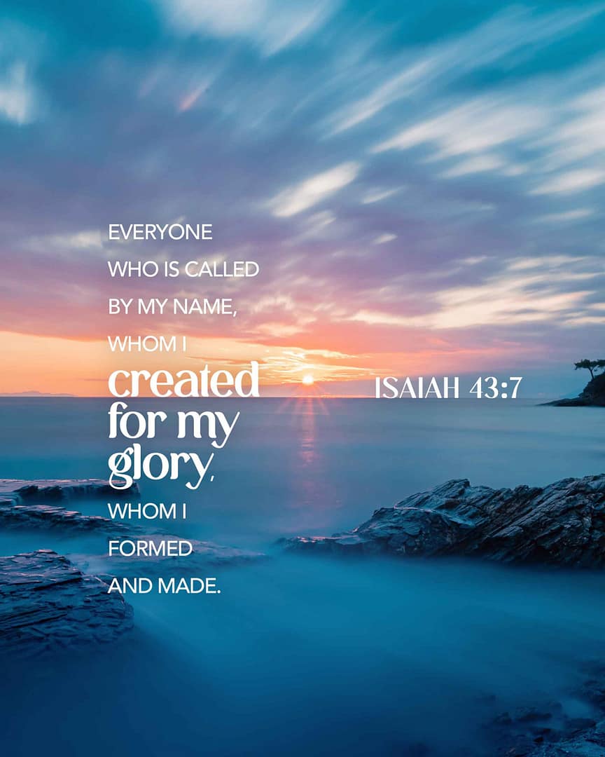 December 5, 2023 Isaiah 43:7"everyone who is called by my name, whom I created for my glory, whom I formed and made.”-Isaiah...