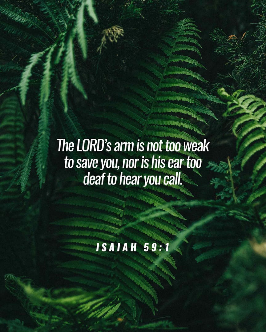 December 10, 2023 Isaiah 59:1Listen! The LORD’s arm is not too weak to save you, nor is his ear too deaf to...